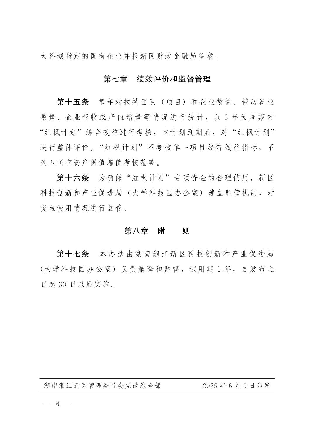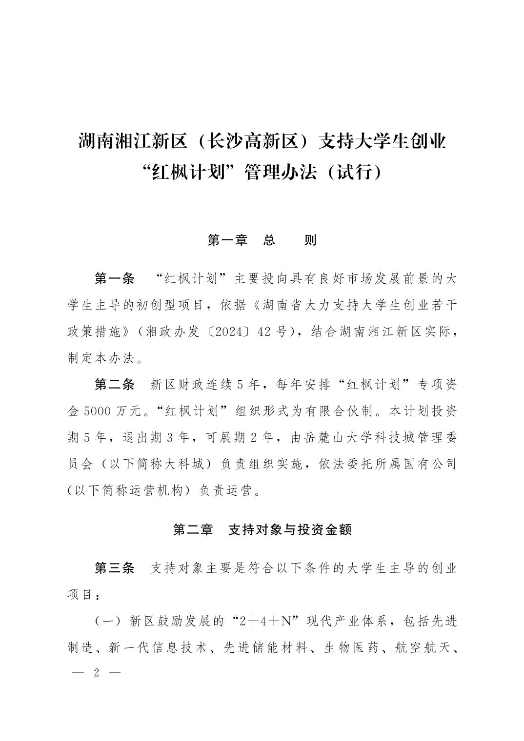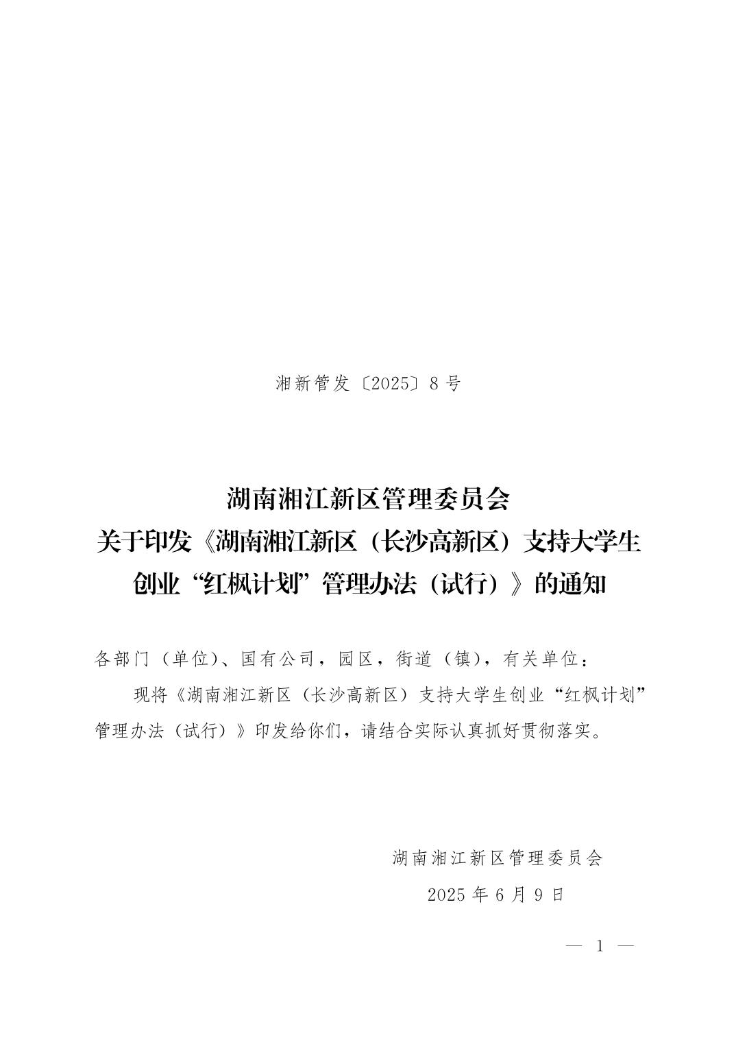 湖南湘江新區管理委員會關于印發《湖南湘江新區(長沙高新區)支持大學生創業“紅楓計劃”管理辦法(試行)》的通知